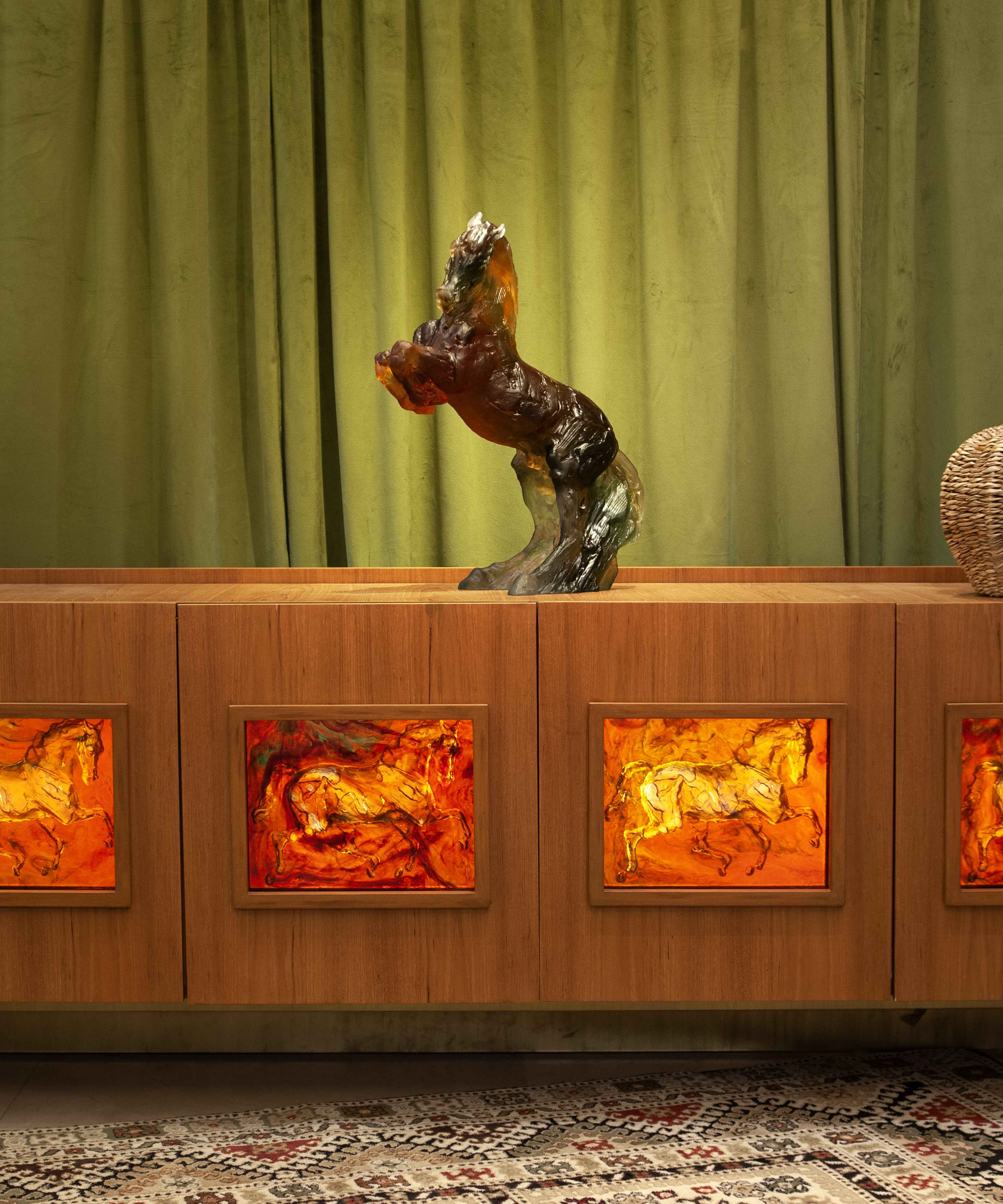 Sculpture de cheval 'Balthazar gris rose' de Jean-Louis Sauvat, une figuration éclatante de la majesté animale en cristal Daum.