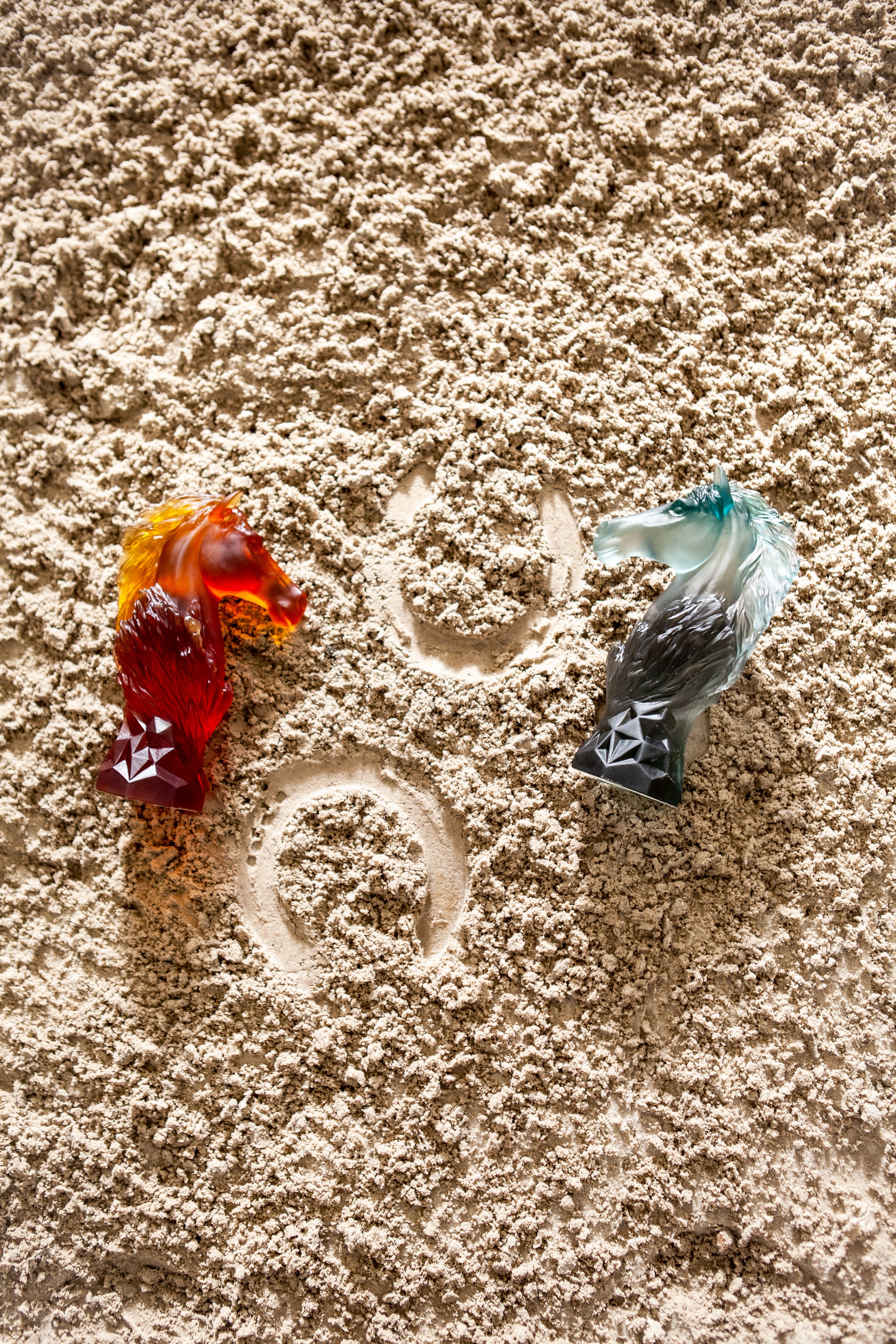 Sculpture Daum, Cavalier d'Echec Ambre, capture l'élan d'un cheval, exprimant une beauté magnétique.