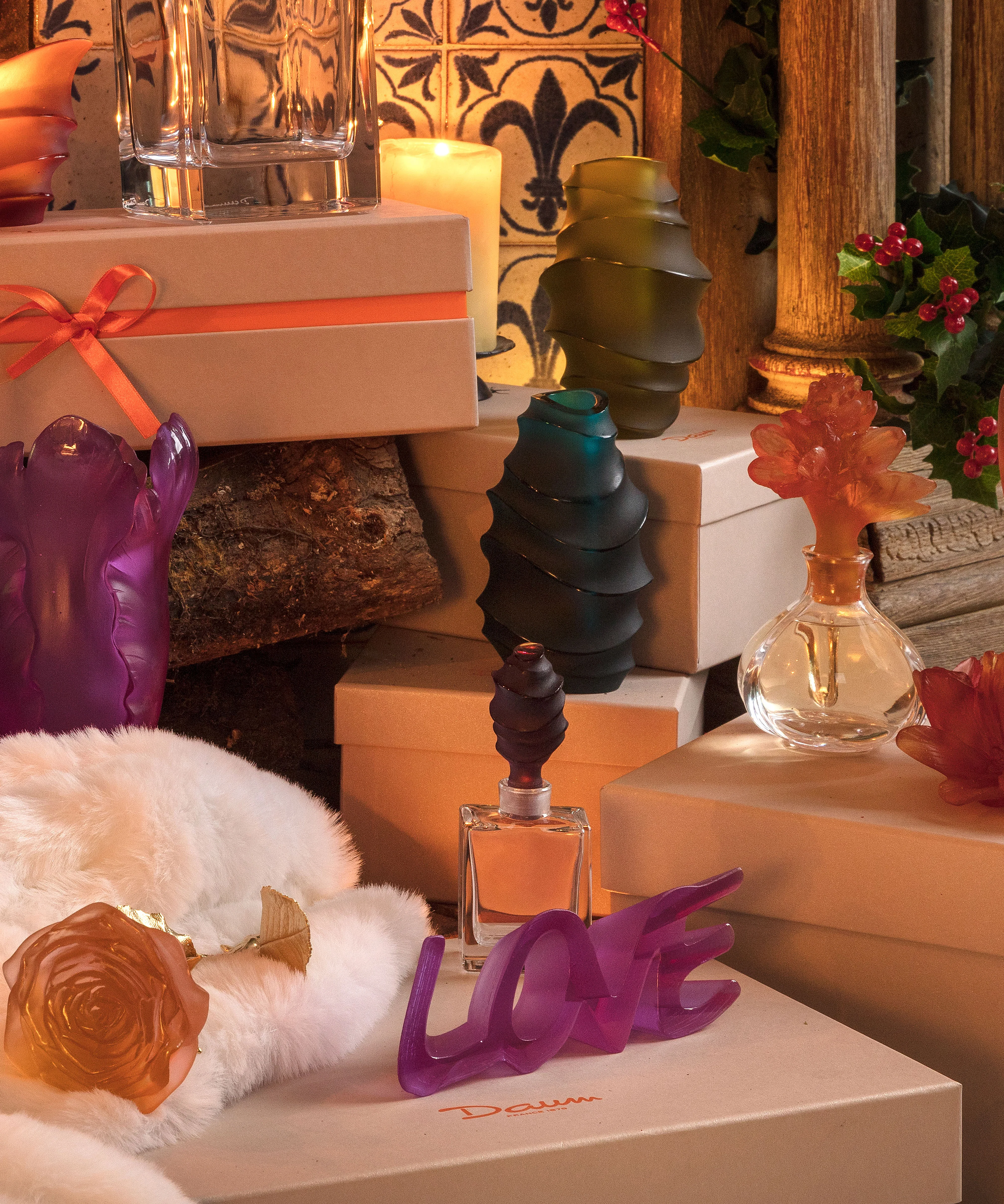 Objet de décoration Daum 'True Love Ultraviolet', véritable symbole d'amour en cristal, évoquant une élégance lumineuse.